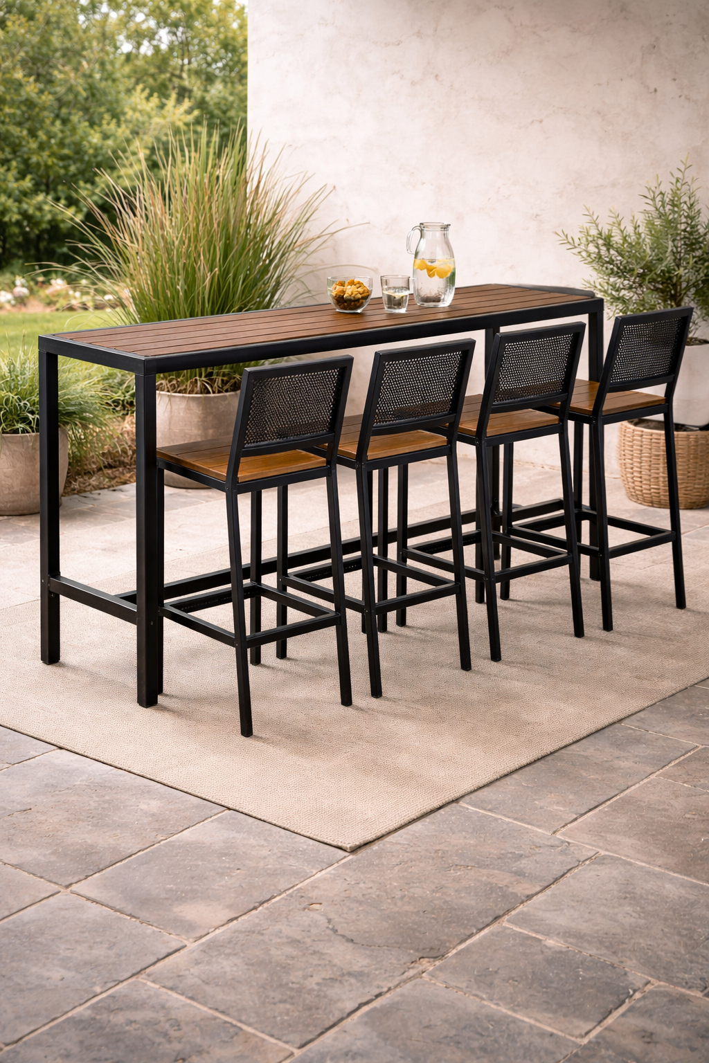 Ensemble de bar en métal et bois composite avec table et chaises